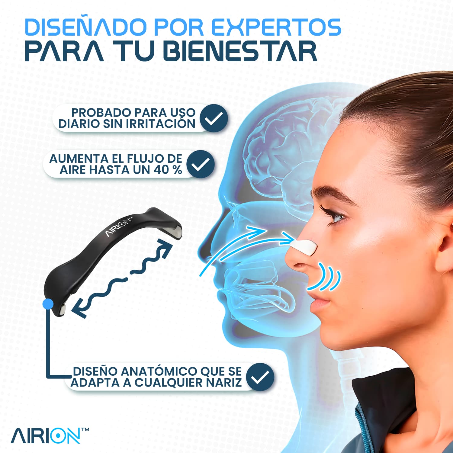 Respira mejor y duerme profundo con AIRION®, el expansor nasal que transforma tu descanso al instante.