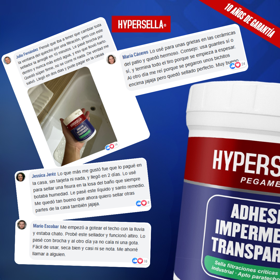 HyperSella® no es solo un sellador común. Su fórmula avanzada con tecnología alemana ha sido testeada por cientos de usuarios, demostrando que sella grietas y goteras al instante, sin necesidad de herramientas.